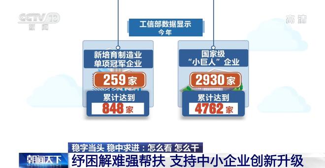 工业和信息化部数据显示,今年,新培育制造业单项冠军企业259家、国家级“小巨人”企业2930家,累计分别达到848家、4762家,带动各地培育省级“专精特新”中小企业4万多家。
