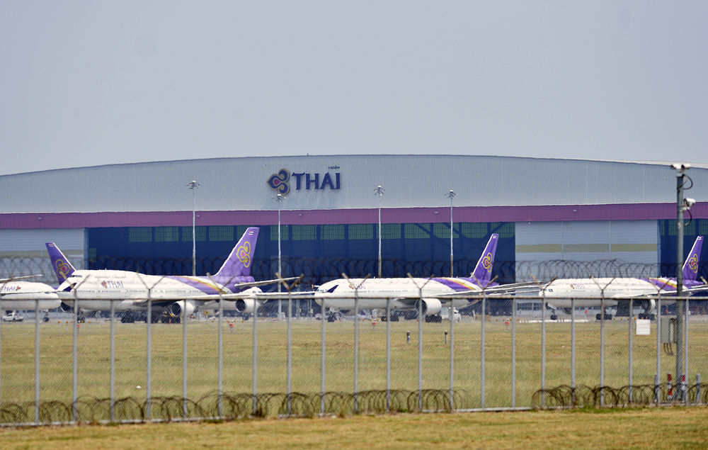 2020年4月1日在泰国曼谷素万那普机场拍摄的泰国国际航空公司的飞机。受新冠疫情冲击,泰国国际航空公司宣布从4月1日起暂时停飞所有国内及国际航线。(新华社发,拉亨摄)