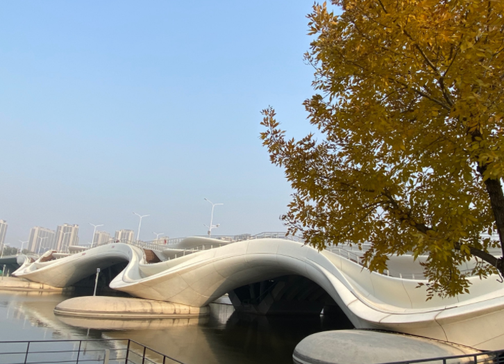 “这座桥被称为北运河上最美的桥。”运河商务区管委会规划科负责人冯宇介绍,千荷泻露桥以“荷”作为设计主题,展现通州水乡区“莲叶何田田”的文化意境;桥梁整体形态将“圆荷玉露一相逢,便胜却人间无数”的动人瞬间展现得淋漓尽致,荷露交融,桥水合一,可谓“接天莲叶无穷碧,映日荷花别样红”。