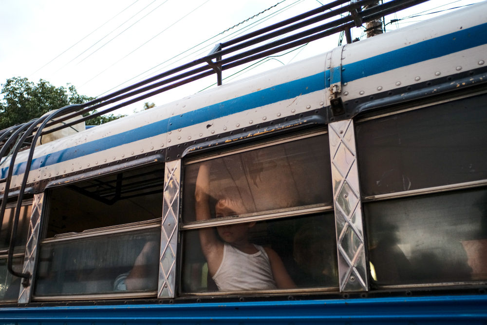 12月18日,在尼加拉瓜奇南德加拍摄的一名在公交车上的男孩。