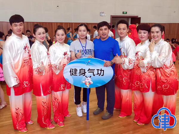 2017年第13届全运会群众比赛中,霍静虹(右一)代表天津队荣获健身气功团体赛冠军