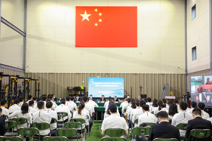 图为8月冰球国家集训队赴俄罗斯训赛前动员大会现场