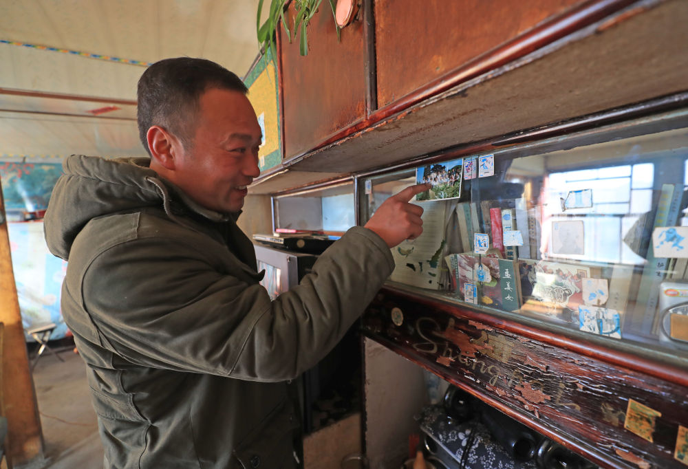 12月8日,张同学在家中指着上学时照片中的自己。新华社记者 杨青 摄