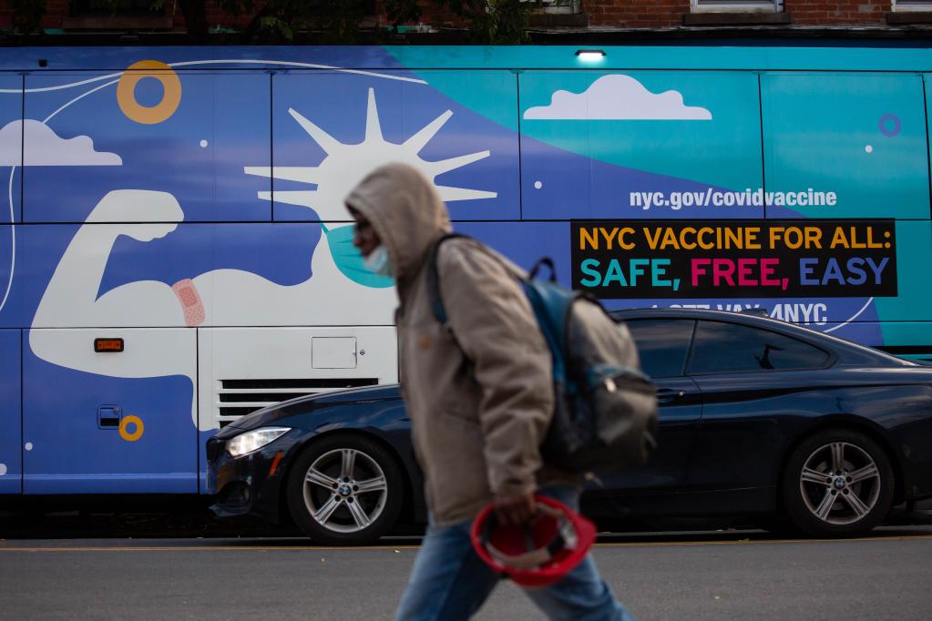 11月19日,行人走过美国纽约一辆新冠疫苗接种车。新华社发(郭克摄)