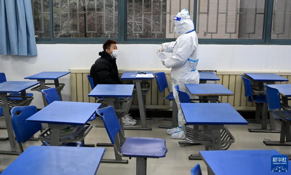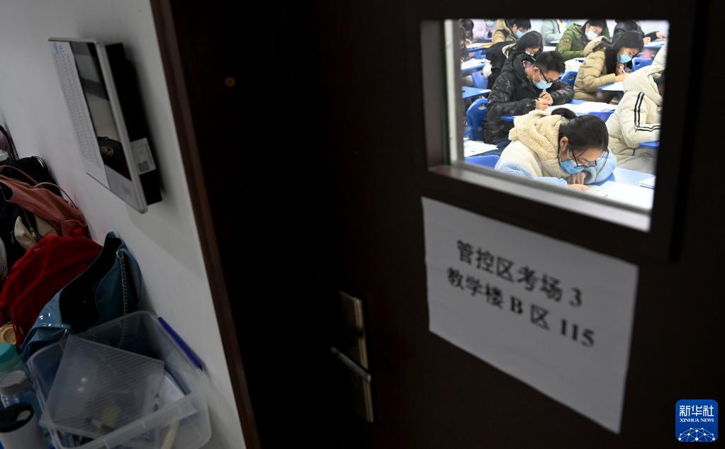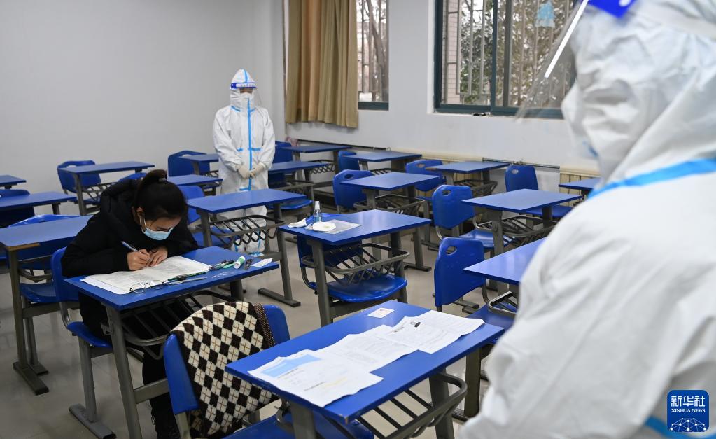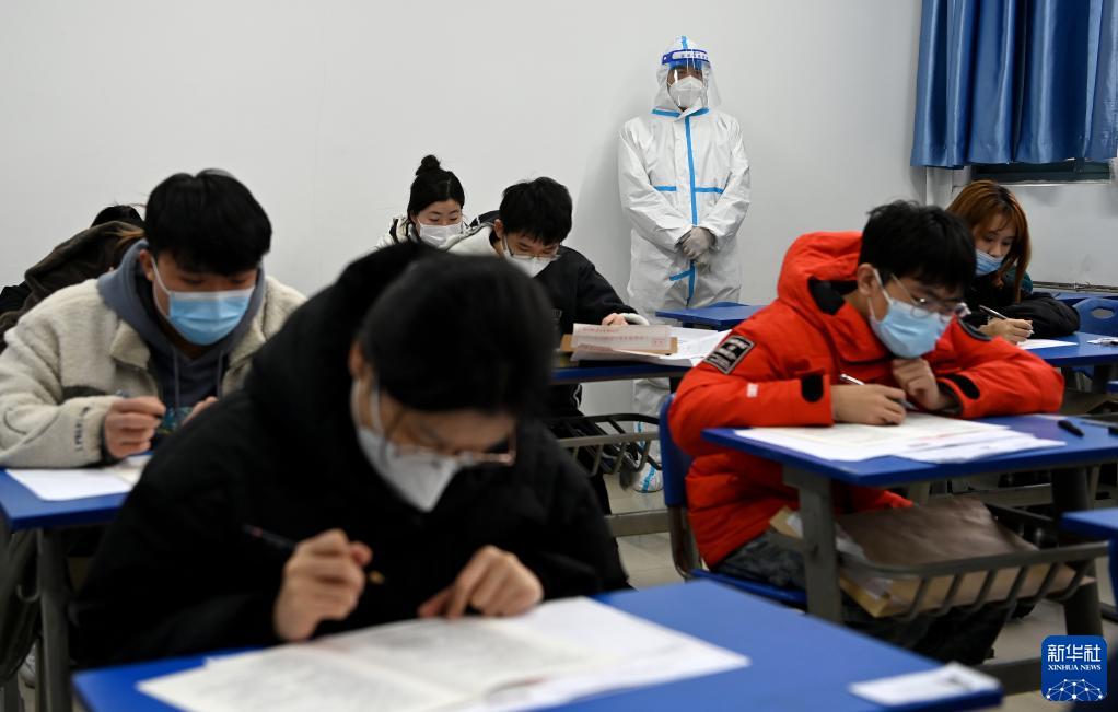 12月25日,考生在2022年全国硕士研究生招生考试西安外国语大学考点隔离考区参加考试。新华社记者 刘潇 摄
