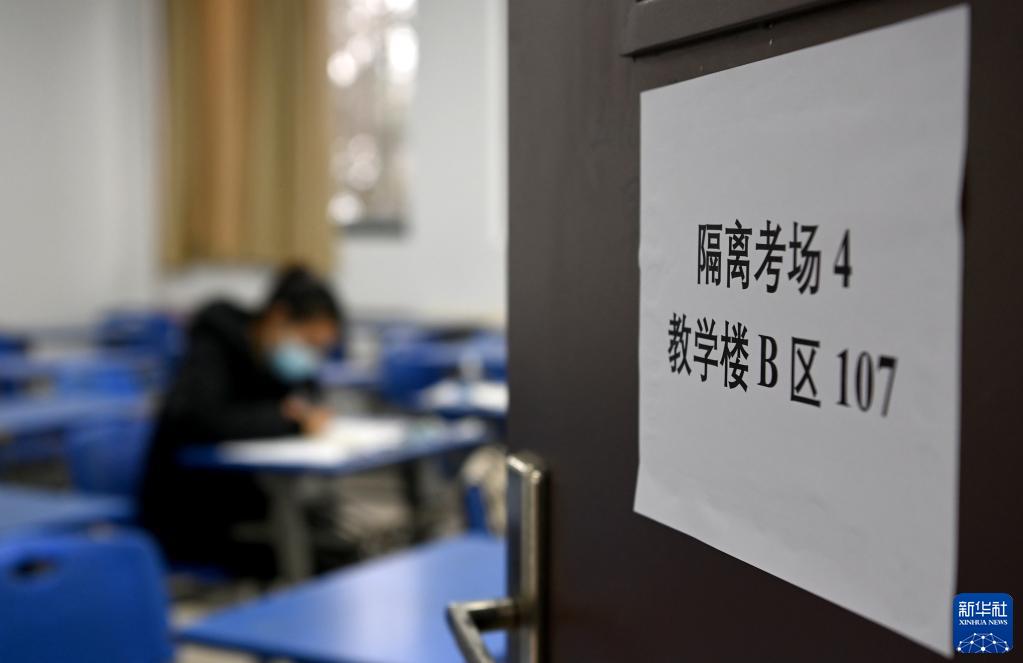 12月25日,在2022年全国硕士研究生招生考试西安外国语大学考点隔离考区,考生在单人隔离考场参加考试。新华社记者 刘潇 摄