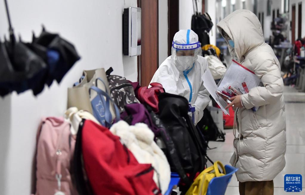 12月25日,在2022年全国硕士研究生招生考试西安外国语大学考点隔离考区,考生准备进入考场。新华社记者 刘潇 摄
