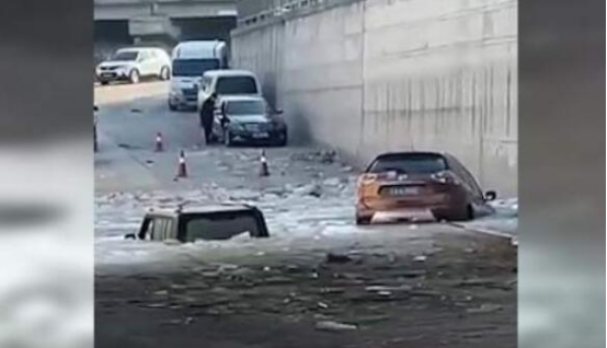 ·沈阳多辆私家车掉进铁路桥下冰窟窿被冻住,铁路局:排水不畅,将组织抽水。