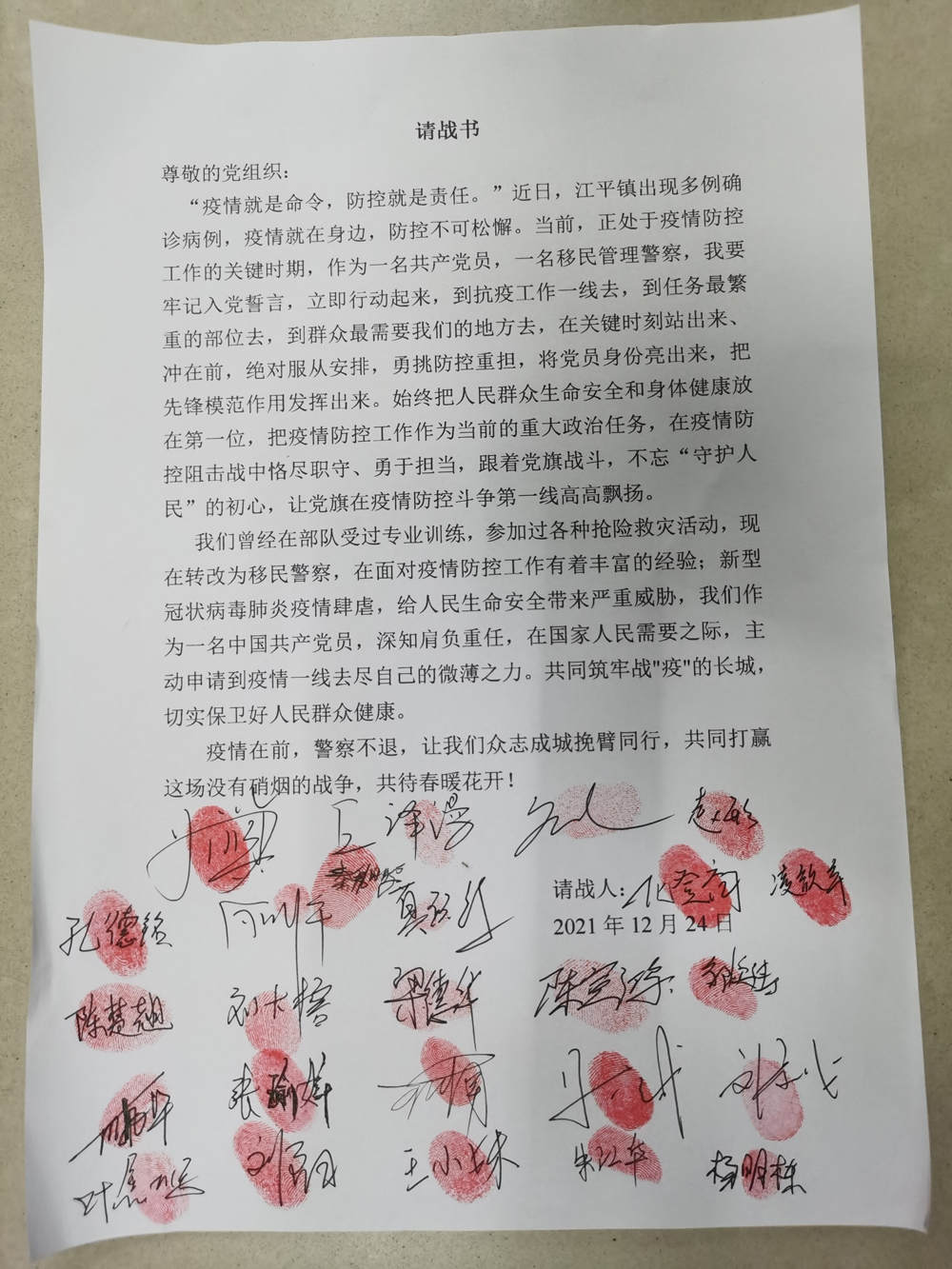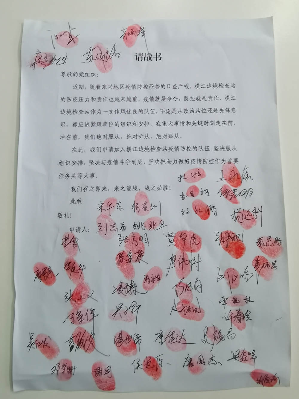 日前,广西防城港边境管理支队上千名民辅警集体递交战疫请战书,主动要求向战疫最前线靠拢,向疫情宣战。国门口岸、边境卡口、村寨社区……民辅警们始终奋战在最前线,保障救援力量通行,维护检测现场秩序,强化边境巡逻防控。