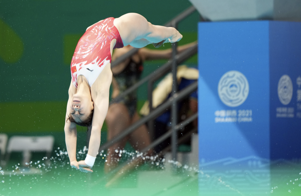 9月14日,广西队选手黄小惠在第十四届全运会跳水女子3米跳板决赛中,她以347.40分的成绩获得铜牌。新华社记者金良快摄