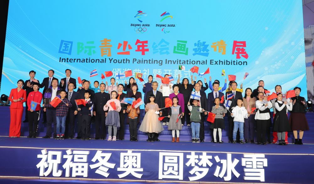 开幕式上揭晓了画展国际作品、国内作品一二三等奖获奖名单,为获奖青少年代表颁发了证书和“冬奥有我”奖杯。国际获奖青少年代表还通过视频方式表达了获奖感受,并用各国语言祝福北京2022年冬奥、冬残奥会圆满成功。