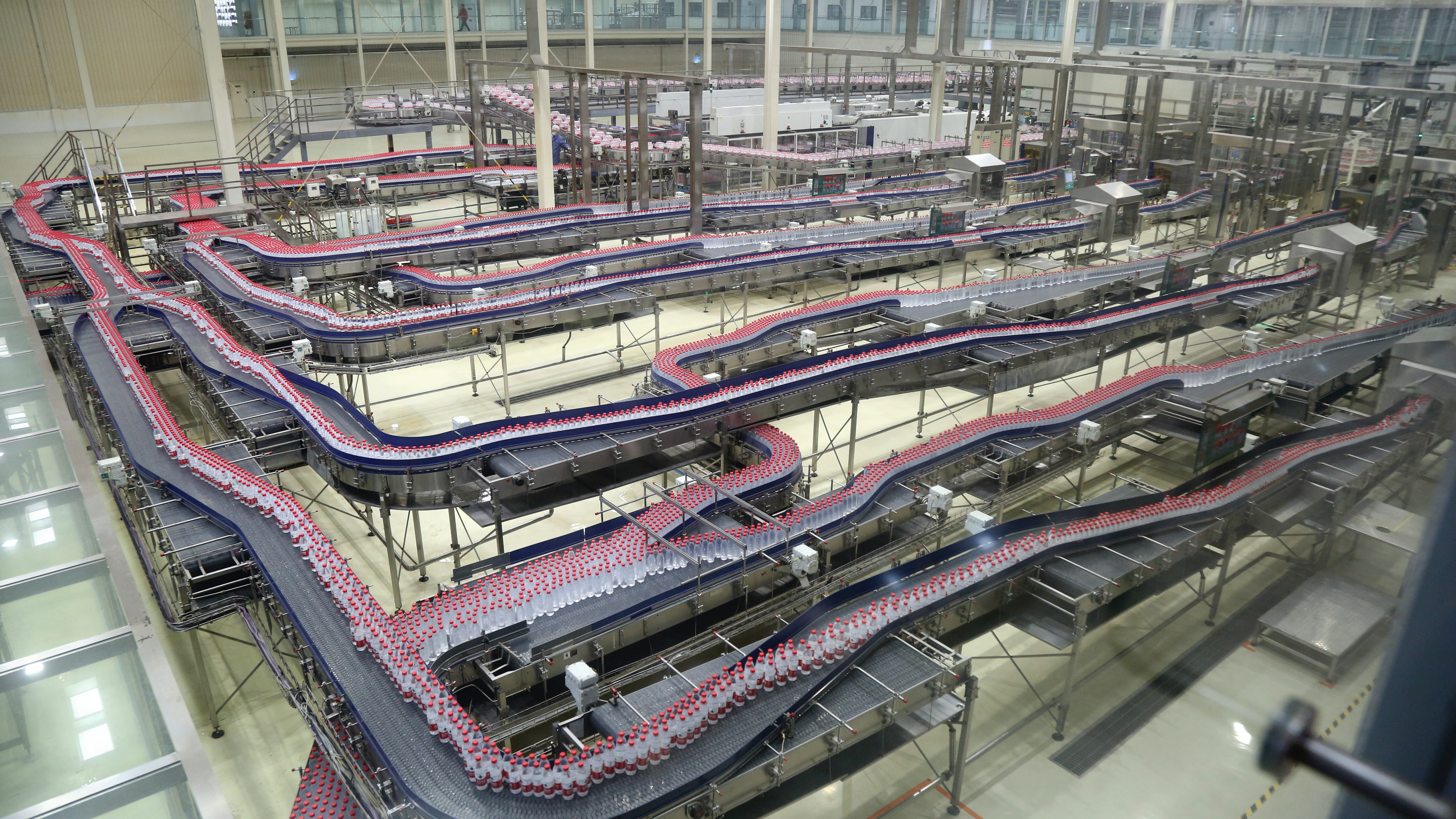 靖宇矿泉饮品产业特色园区内的矿泉水生产线