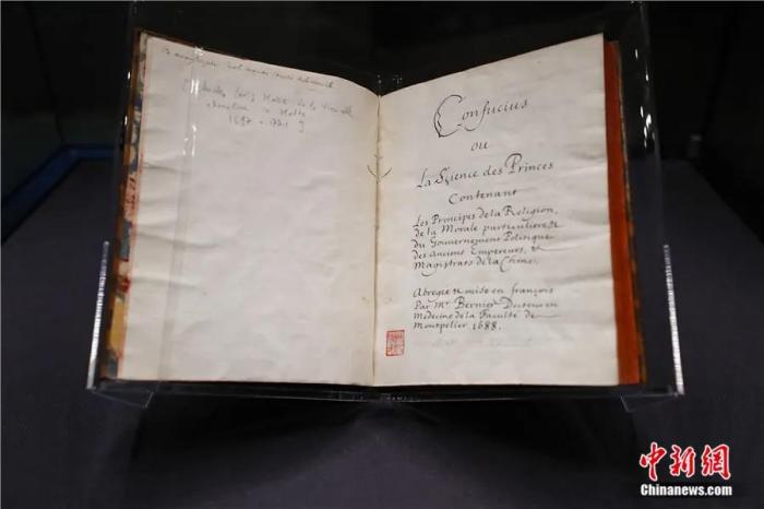 2020年11月,法文本《论语导读》原著典藏仪式暨展览在位于北京的国家图书馆、国家典籍博物馆开幕。这部珍贵手稿及相关珍贵文献在国家图书馆展出。中新社记者杜洋 摄