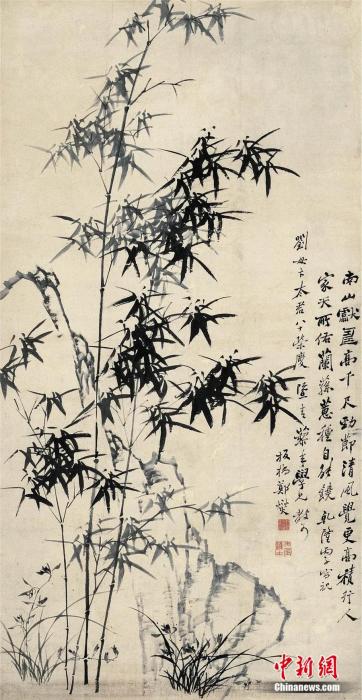 图为郑板桥画作《竹石兰蕙图》。中新社发 葛士恒 摄
