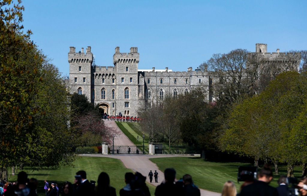 4月17日,人们聚集在英国温莎城堡外等待葬礼举行。(新华社记者韩岩摄)