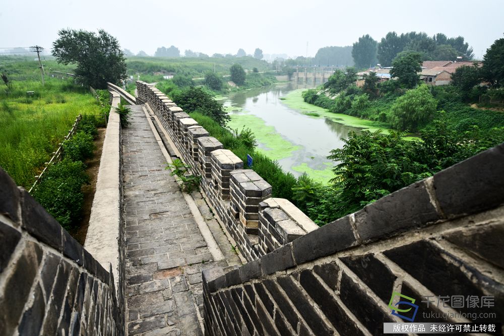 绿草间,城墙和通运桥的出入口建起了金色的围栏,围栏上镶嵌着城墙及通运桥的简介。不远处的凉亭里,几位附近的居民正在此摇着蒲扇纳凉、闲谈,借着水面儿,难得有一片凉风。联想起古时这里的繁忙的运输场景,不禁让人有种游历岁月之感。