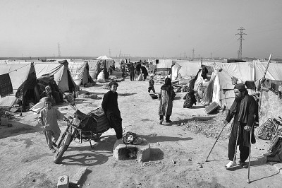 10月23日,阿富汗马扎里沙里夫的一处无家可归者的营地。新华社发