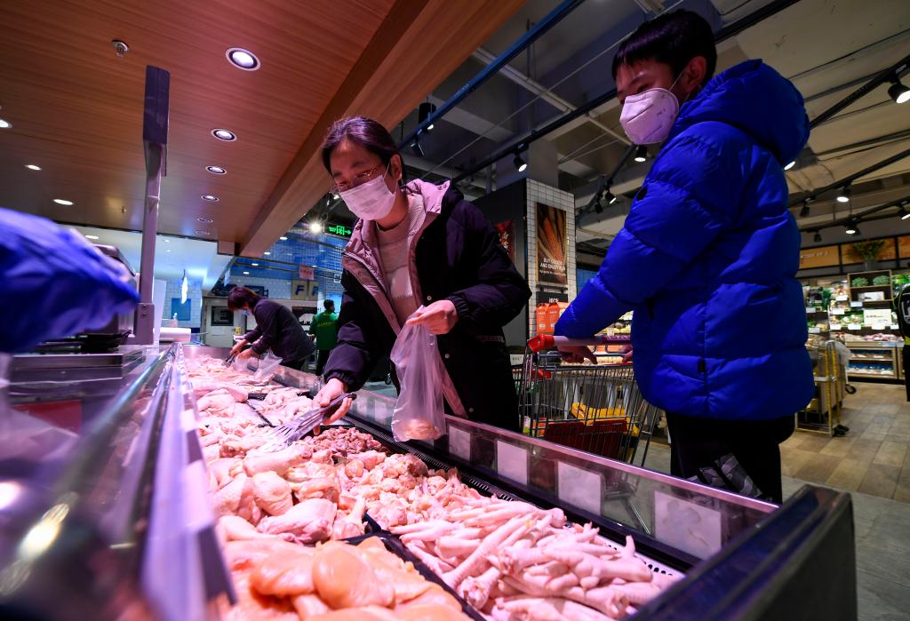2020年3月10日,居民在宁夏银川市一家超市内选购鸡肉。新华社记者冯开华摄