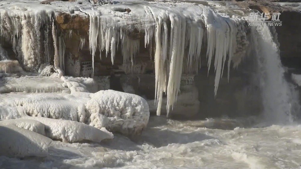 【#黄河壶口瀑布现流凌叉桥景观#】近日,受寒潮天气影响,黄河中游晋陕峡谷流凌密度持续增大,大量冰凌在壶口瀑布下游十里龙槽互相凝结粘连在一起,形成“流凌叉桥”的奇特景观。戳视频,看冰桥连接黄河两岸、晋陕百姓再结“秦晋之好”。 新华社的微博视频