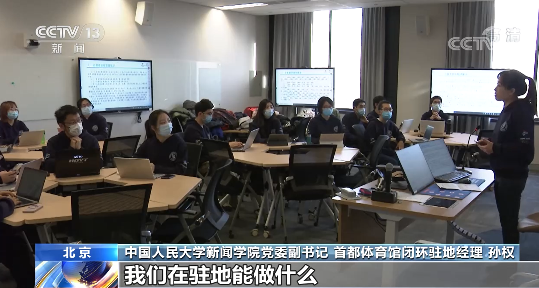 在中国人民大学,孙权老师正在为冬奥闭环内志愿者进行岗前培训活动。