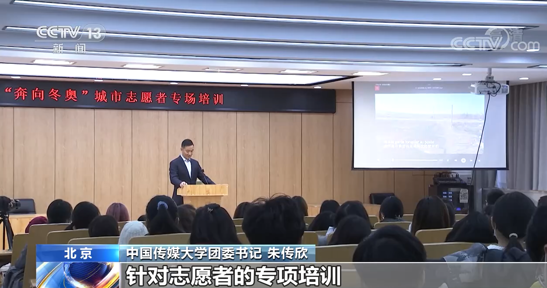 中国传媒大学团委书记 朱传欣:在近三个月的时间里,组织了大概十余场的针对志愿者的专项培训,包括通用培训,像志愿礼仪、冬奥知识、应急救护等方面。