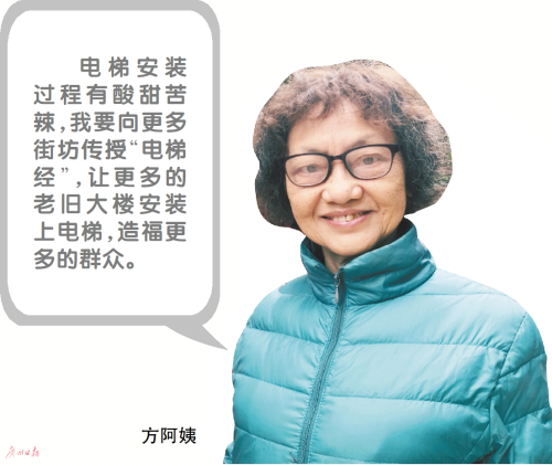 作为广州中心六区首个推行“连片加装”电梯的试点小区,方阿姨所在的水荫路34号大院当时同时在建18部电梯,多于过去5年的累计开建量。