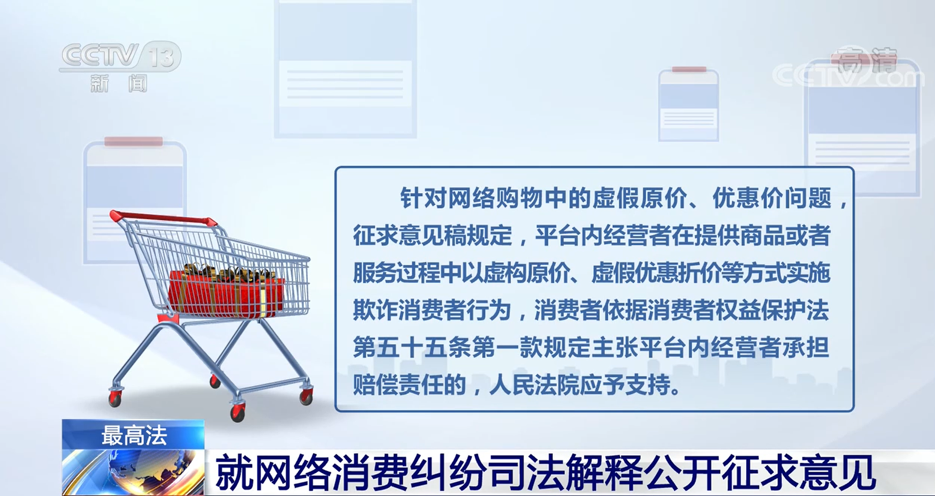 针对网络购物中的虚假原价、优惠价问题,征求意见稿规定,平台内经营者在提供商品或者服务过程中以虚构原价、虚假优惠折价等方式实施欺诈消费者行为,消费者依据消费者权益保护法第五十五条第一款规定主张平台内经营者承担赔偿责任的,人民法院应予支持。