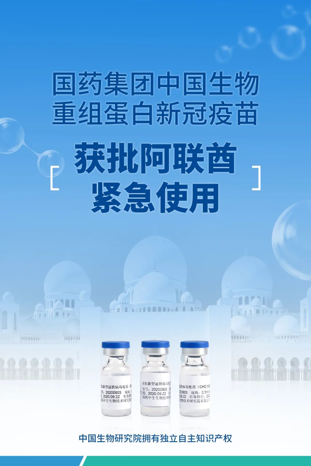 12月27日,阿联酋卫生和预防部批准紧急使用国药集团中国生物二代重组蛋白新冠疫苗。这也是全球首个获批紧急使用的二代新冠疫苗。该新冠疫苗针对多种变异毒株具有广谱保护效力。阿联酋已对该疫苗开展相关研究,它将作为加强针用于已接种两剂中国生物新冠灭活疫苗的人群。