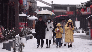 打卡拍照,有的人在飞舞的雪花中记录美好;