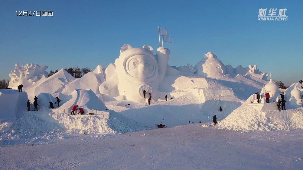 【#这个雪做的冰墩墩有30米高#】12月28日,第三十四届哈尔滨太阳岛雪博会主塑“冬奥·太阳岛之旅”落成迎客。该主塑长100米,高30米,用雪量2.7万立方米,整体设计元素以2022年北京冬奥会吉祥物冰墩墩、冬残奥会吉祥物雪容融形象,以及哈尔滨地标性的建筑为主。本届太阳岛雪博会努力营造浓厚的冰雪文化艺术氛围,让冰情雪韵冬趣点燃哈尔滨。#30米高巨型冰墩墩亮相哈尔滨#(王建威、张涛、谢剑飞) 新华社的微博视频
