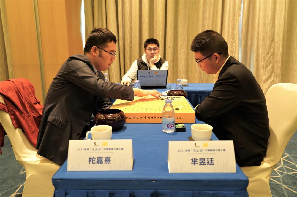 两位世界冠军芈昱廷和柁嘉熹的鏖战最为胶着,双方开局得失大致相当,中盘攻防又各有失误,执黑的柁嘉熹逐渐取得主动权后,忽略了芈昱廷的强手,下方三子被吃,终于不支。