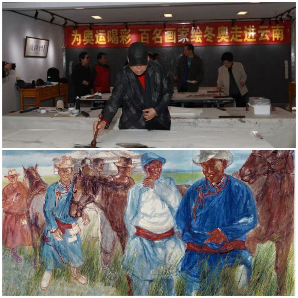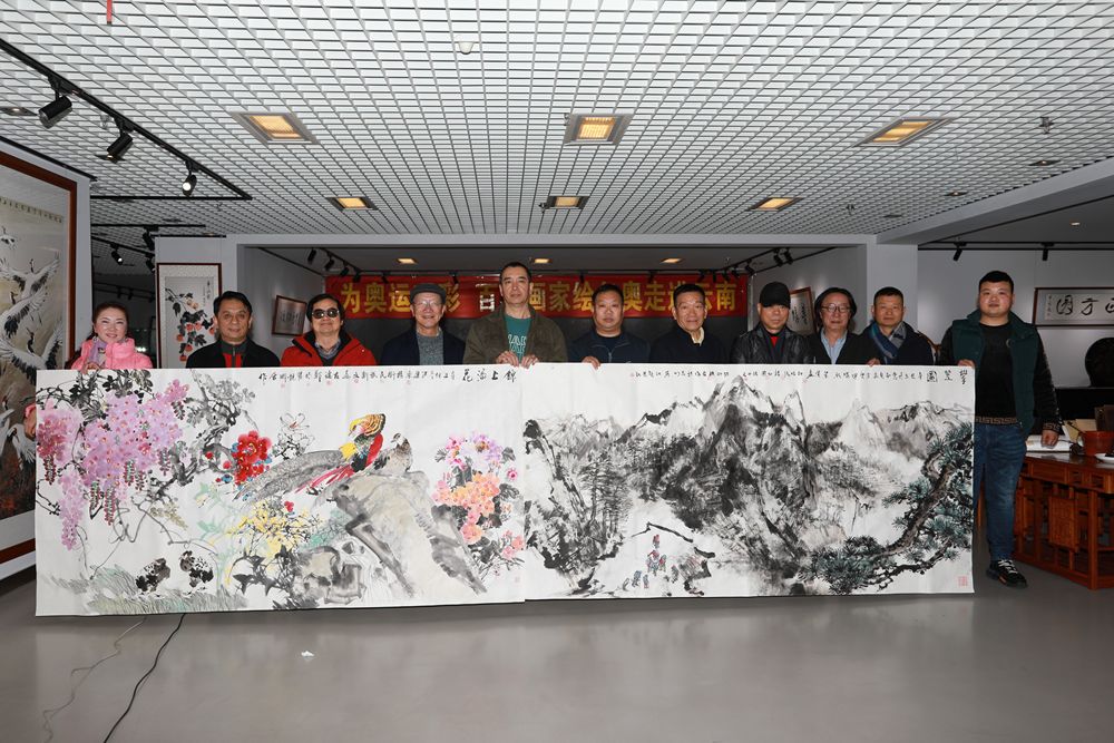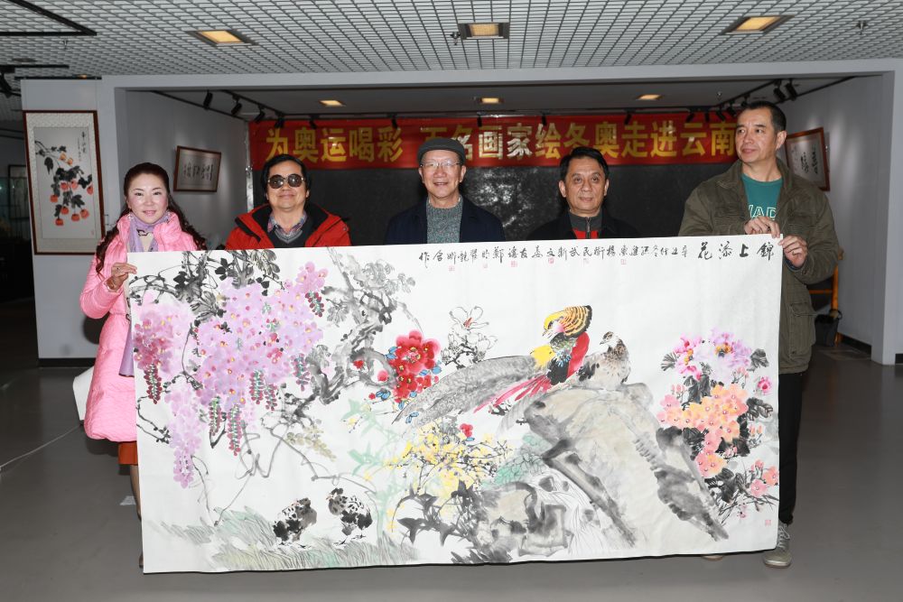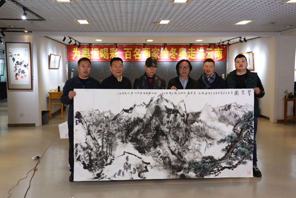 近日,由“为奥运喝彩”组委会主办的文化活动“百名画家绘冬奥”走进了云南省昆明市。11位云南艺术家合作创作了两幅中国画作品,一幅是名为《攀登图》的山水画,另一幅是名为《锦上添花》的花鸟画。