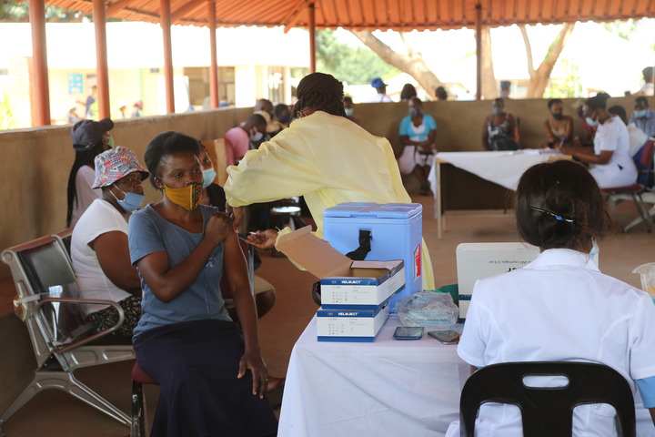 3月24日,一名女子在津巴布韦维多利亚瀑布城一家医院接种中国国药集团新冠疫苗。新华社发(陈雅琴摄)