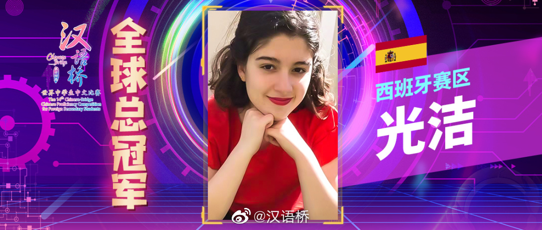 “我几乎不敢相信自己夺冠了,因为参加比赛的选手都很厉害。” 16岁的西班牙姑娘光洁说。近日,她获得了由教育部主办的第十四届“汉语桥”世界中学生中文比赛全球总冠军。