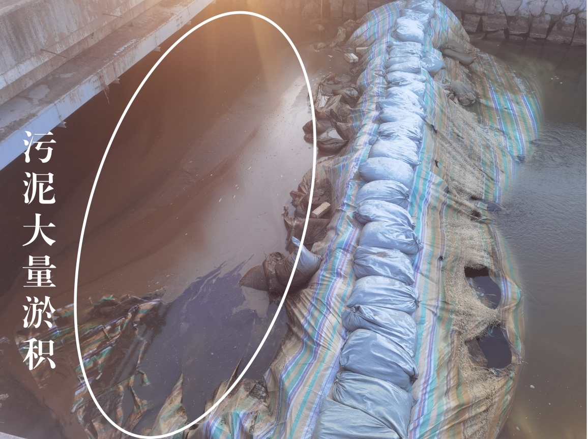 今年12月8日,督察组现场督察发现,何家沟上游临时围堰内污泥大量淤积。