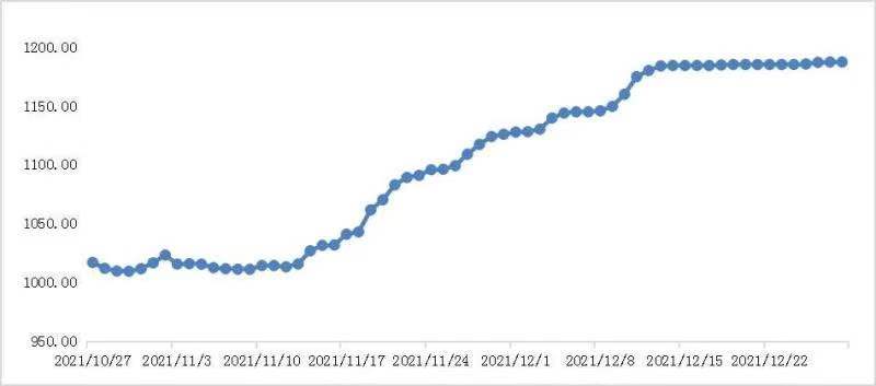 新华财经北京12月29日电(吉喆韵、李新苗、周宇涵)截至12月28日,新华-中国(运城)苹果价格指数报1187.28点,较上期上涨2.10点,涨幅0.18%;较基期上涨187.28点,涨幅18.73%。