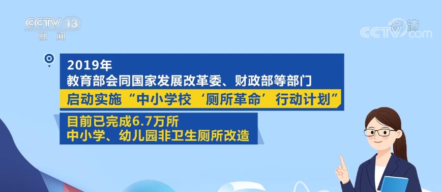 在前期改造14.1万所中小学、幼儿园非卫生厕所的基础上,2019年,教育部会同国家发展改革委、财政部等部门启动实施“中小学校‘厕所革命’行动计划”,目前已经完成6.7万所中小学、幼儿园非卫生厕所改造。