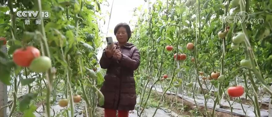 在昌乐县乔官镇的一处种植园里,今年43岁的邵香燕正在西红柿大棚里做直播带货。