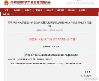 【#国资委明确央企双碳目标#】国资委30日发布《关于推进中央企业高质量发展做好碳达峰碳中和工作的指导意见》。意见明确,到2025年,中央企业产业结构和能源结构调整优化取得明显进展,重点行业能源利用效率大幅提升,新型电力系统加快构建,绿色低碳技术研发和推广应用取得积极进展;中央企业万元产值综合能耗比2020年下降15%,万元产值二氧化碳排放比2020年下降18%,可再生能源发电装机比重达到50%以上,战略性新兴产业营收比重不低于30%,为实现碳达峰奠定坚实基础。(记者王希)