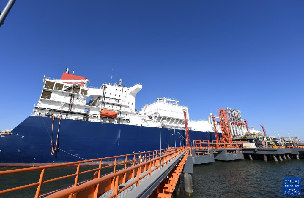 12月29日,一艘LNG运输船停靠在中国石化天津LNG接收站“2号泊位”。新华社记者 赵子硕 摄