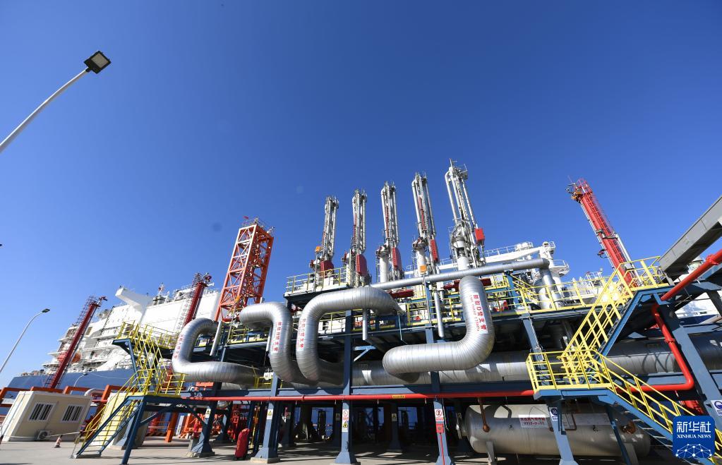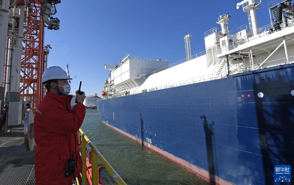 12月29日,工作人员在中国石化天津LNG接收站“2号泊位”上进行船舶接卸作业。新华社记者 赵子硕 摄