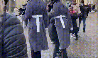 海外网12月30日电当地时间29日上午,两名英国女王卫队士兵在伦敦塔附近街道巡逻时,将一名挡住他们去路的男孩撞倒,并从其身上跨过。一名游客将这个过程拍下并上传网络,视频引发英国民众热议。