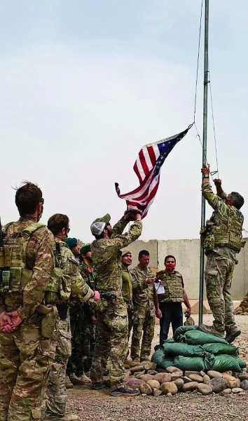 5月2日,美军士兵在阿富汗赫尔曼德省一处军事基地降下美国国旗。新华社发