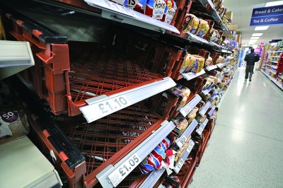 11月24日在英国伦敦一家超市拍摄的缺货的面包货架。新华社发
