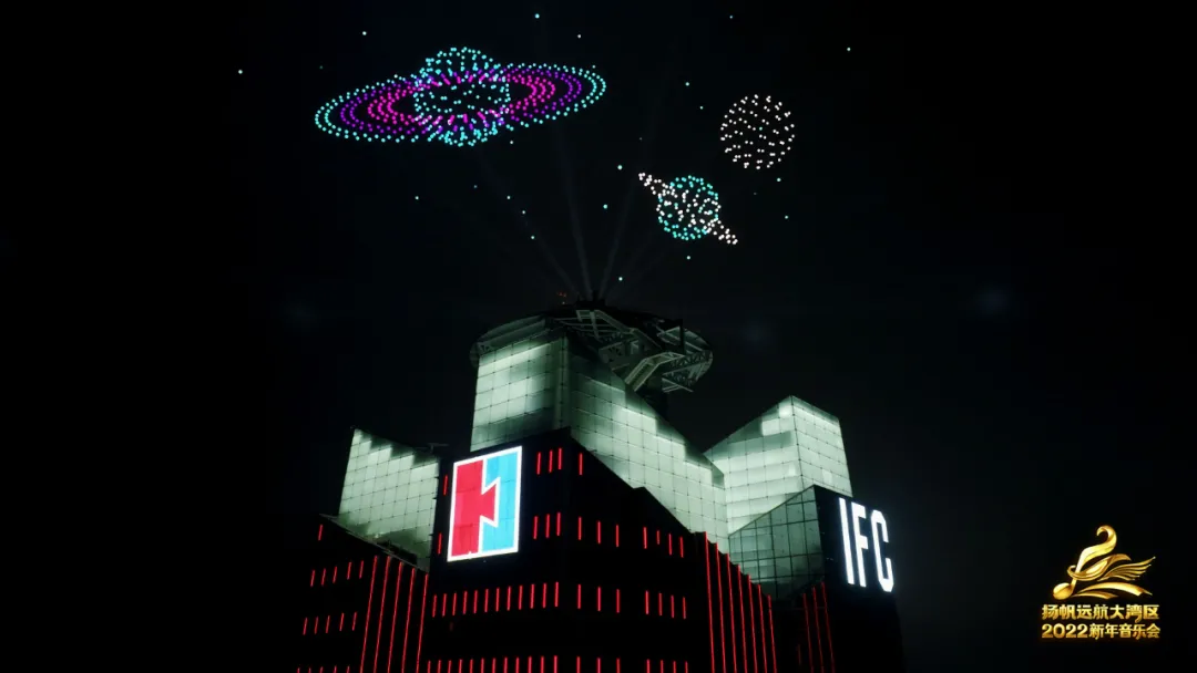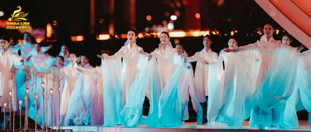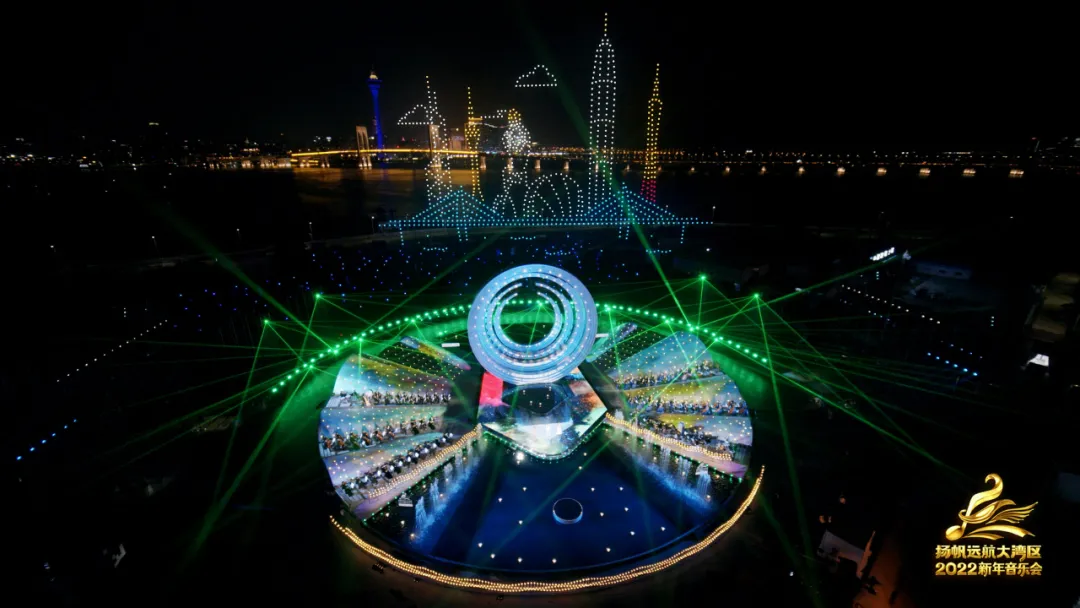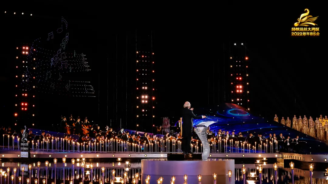 一千架无人机在夜空盘旋、虚拟VR等舞美科技手段加持,光影渲染下,新年音乐会将在2022年的第一天,深刻诠释出大湾区“勇立潮头敢为先,奋楫扬帆谋新篇”的恢宏气势。