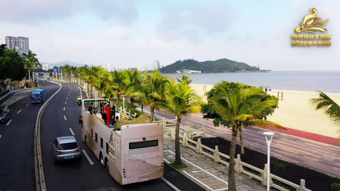 与往届的新年音乐会不同,《扬帆远航大湾区一一2022新年音乐会》用一辆融合了电台与音乐展示功能的“乐游巴士”作为全媒体移动舞台,串联起“城”“海”“人”“桥”4个乐章。主持人与音乐会的特邀嘉宾将搭乘乐游巴士前往港珠澳大桥、横琴国际金融中心、竹仙洞水库、百年古村会同村、爱情邮局以及珠海地标“日月贝”广场等地,带领观众在流动的舞台上感受大湾区的勃勃生机。