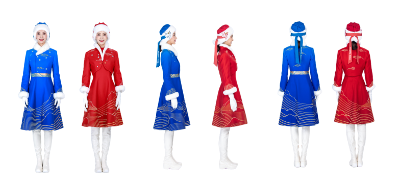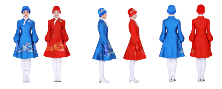 颁奖礼仪服装共有三套方案。分别为“瑞雪祥云”“鸿运山水”和“唐花飞雪”。
