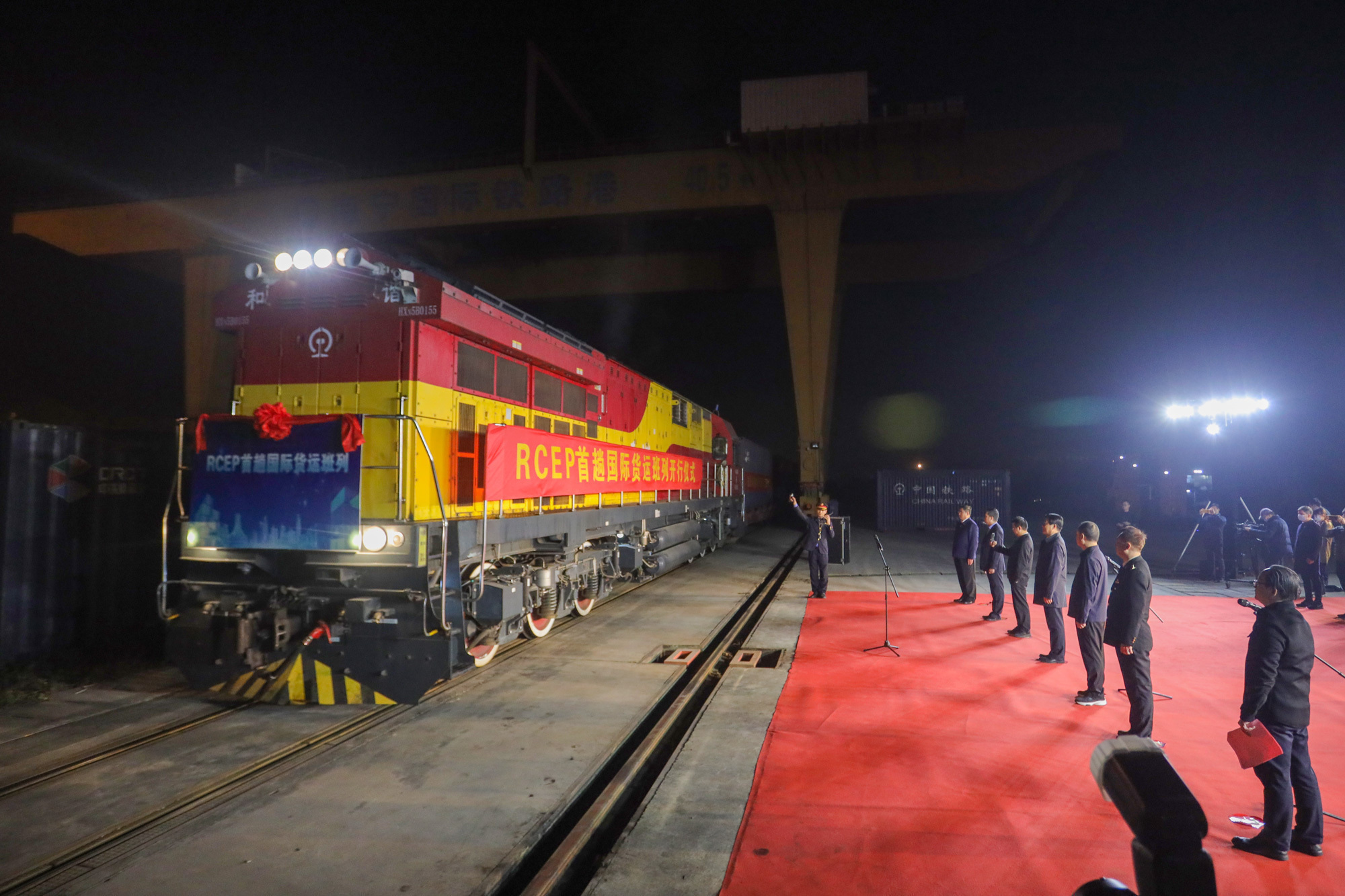 2022年1月1日凌晨00:05,一趟满载货物的货运班列从南宁国际铁路港启程,开赴越南河内。这是《区域全面经济伙伴关系协定》(RCEP协定)生效后首趟开往RCEP成员国的国际货运班列。