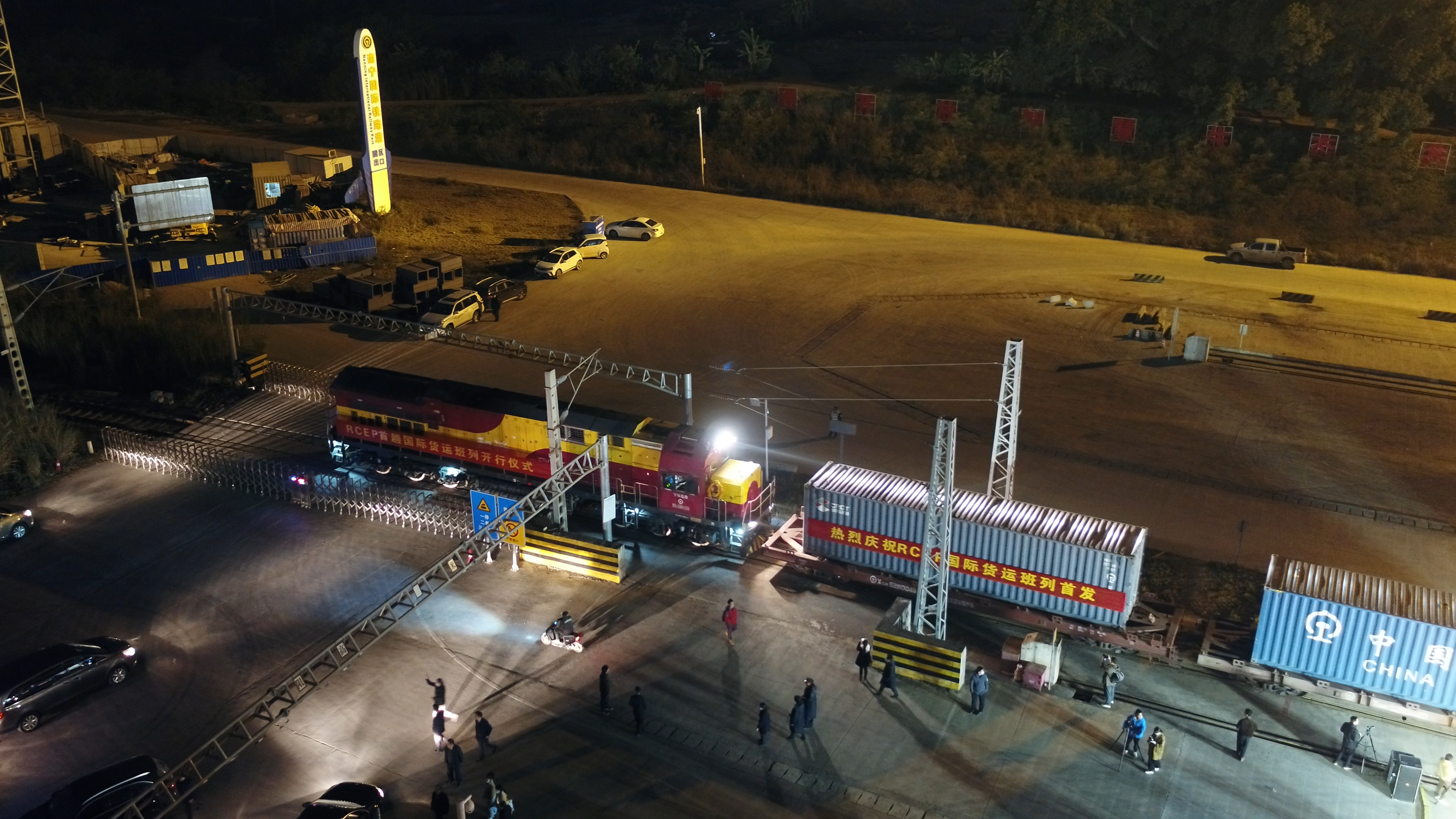 航拍RCEP生效后首趟国际货运班列即将发车。冯登海摄