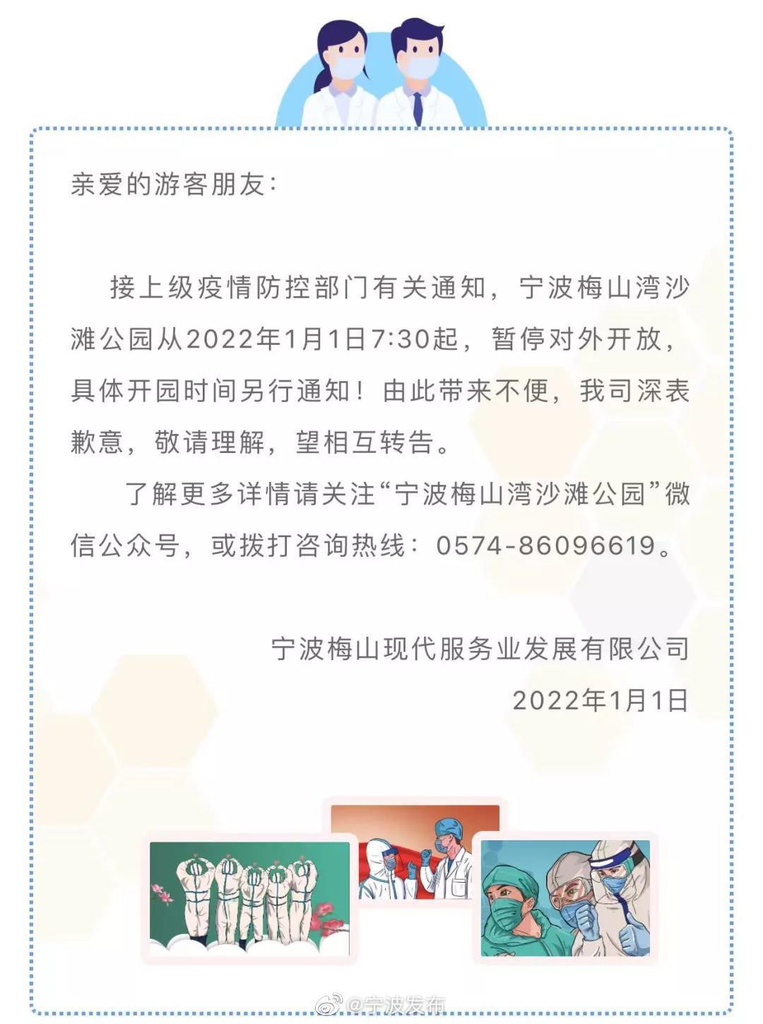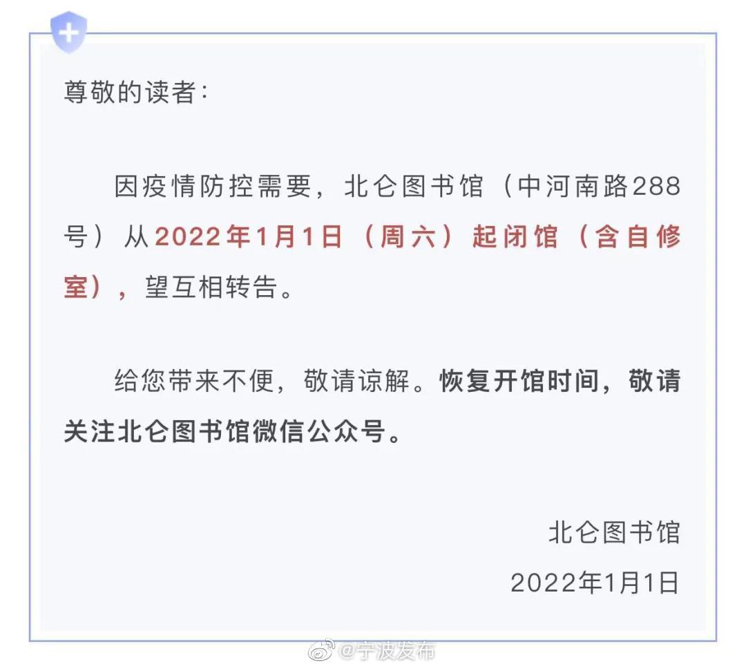 据宁波市政府新闻办公室官方微博消息,因疫情防控需要,北仑区中医院停诊,多个公共场所、景区采取临时关闭等措施,并停止相关线下活动。